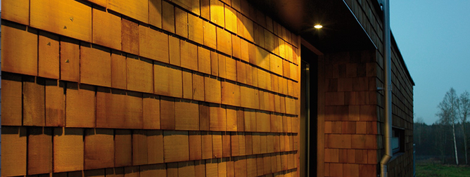 En hyvlad ytterväggspanel som ofta används på fritidshus för att ge timmerhuskaraktär.