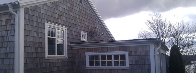 Som en enkelfalsad panel med triangulärt tvärsnitt. Vanligt före­kommande på våra svenska stugor.